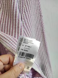 Marc Cain Sports - taglia 1 - Cardigan morbido a trecce rosa e bianco a manica lunga e righe