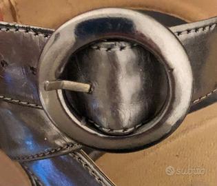 Scape originali Unisa. Con laccio su caviglia dotato di fermo regolabile. Dotate di fascia anteriore. Suola in gomma molto solida (effetto anti-scivolo). Base in sughero. Si tratta di un modello veramente elegante e accattivante che impreziosisce qualsiasi abbigliamento, anche con il colore argentato, che spicca molto. Sono state usate, ma si trovano ancora in buone condizioni. Presentano qualche scoloritura e qualche scurimento, ma che non sono visibili una volta calzate.