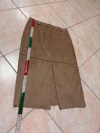 Gonna beige in tessuto effetto scamosciato, ampio spacco frontale. MARELLA taglia S, le misure in cm sono riportate in foto. Condizioni ottime.
