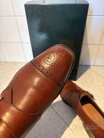Vendo eleganti scarpe da uomo Mariano Campanile, in autentica pelle color cuoio, modello Monk Strap con fibbia laterale.