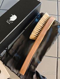 Mariella Martinato - Spazzola abiti cashmere con morbide setole naturali chiare e scure - Cashmere clothes brush with soft natural light and dark bristles Mariella Martinato Spazzola con impugnatura realizzata in noce canaletto con morbide setole naturali bicolore. La parte superiore viene decorata con del vero corno. Queste setole sono molto morbide e quindi particolarmente adatte agli abiti in cashmere. Realizzata artigianalmente a mano. Unicità del colore della parte superiore. Dim. cm. 25 Prezzo originale 220 €! ******* Mariella Martinato Brush with a Canaletto walnut handle and soft, two-tone natural bristles. The top is decorated with real horn. These bristles are very soft and therefore particularly suitable for cashmere clothes. Handcrafted. The top is unique in color. Size: 25 cm. Original price: €220!