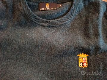 Vendesi pullover girocollo da uomo, Marina Militare, taglia L, blu scuro. Composizione: 80% lana 20% poliammide