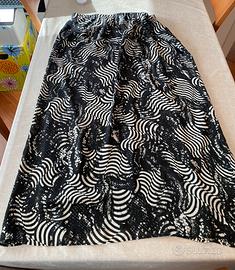Marina Rinaldi - bellissima maxi gonna con fodera - taglia 58 (29) - in poliestere - plissettata davanti, liscia dietro - elegante motivo bianco e nero - elastico in vita - comodissima ed elegante - lunghezza 100 cm - vita 50/63cm - svasata - vendita solo tramite spedizione