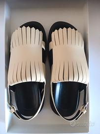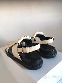 Sandali iconici fussbett con frange Marni in pelle di vitello color mushroom 36 EU
