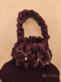 elegantissima marshmallow bag realizzata interamente a mano. la borsa, in viola (vinaccio) ha anche una catenella rimovibile con degli charm di abbellimento che la rendono ulteriormente elegante.
