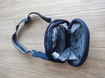 Marsupio blu marca Renato Balestra. Compatto elegante, custodia rigida.