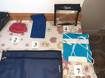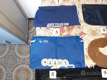 8) 2 sacche portaoggetti marchiate 10 e Lotto 39 x 35 cm. Come nuove, mai usate. Prezzo: 4 € l'una.