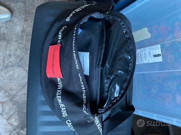 Vendo marsupio originale marca CALVIN KLEIN JEANS di colore nero con scritte in stampatello di colore bianco . Dotato di due tasche chiuse con cerniera : una posta sul davanti ed una dietro. Cintura nera regolabile sulla vita . Perfette condizioni perche mai usato