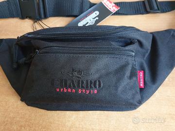 Marsupio Charro in tessuto nero e scritte rosse.