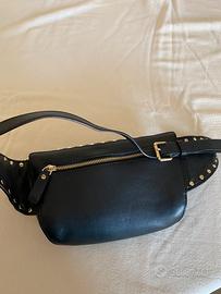 Vendo marsupio di pelle nera con borchie dorate in ottime condizioni (cm 23x6x13h)