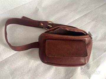 morbida pelle marrone, comodo marsupio con tasca esterna, leggero e capiente