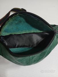 marsupio in vera pelle con due tasche chiuse con lampo e elastico chiuso da gancio