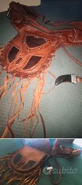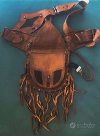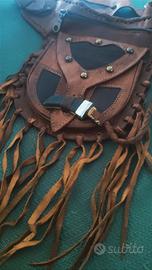 Offre vari ricami in pelle e decorazioni esterne dalle frange, a fargli da cornice che lo contraddistinguono, alla chiusura della tasca esterna ricavata in osso!