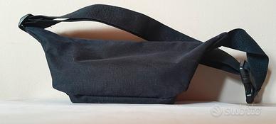 marsupio (o borsa a tracolla sportiva) del marchio italiano Mandarina Duck. Ecco alcuni dettagli che si possono notare dall'immagine: Brand: Il nome "Mandarina Duck" e la dicitura "Original" sono chiaramente visibili nella trama della fodera interna. Caratteristiche: È realizzato in tessuto tecnico nero (molto probabilmente nylon o poliestere), noto per essere resistente e leggero. Presenta una chiusura a zip principale e una tasca interna supplementare, anch'essa zippata, per organizzare oggetti più piccoli come chiavi o monete. Design: Ha una forma ergonomica pensata per essere portata in vita o a tracolla (crossbody), grazie alla cinghia regolabile con fibbia a scatto visibile sul lato sinistro. È un accessorio molto pratico per il tempo libero o i viaggi, tipico dello stile funzionale e minimalista del brand.