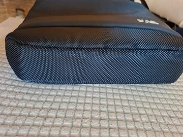 Vendo per inutilizzo marsupio Nava, leggermente imbottito, usato pochissimo. Unico segno di usura è sul bordo grigio scuro della taschina interna, come si vede dalle foto. Esternamente in perfette condizioni. Colore blu. Misure: cm. 24,5 altezza, cm. 21 larghezza e cm. 5 spessore.