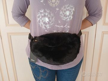 Morbido marsupio nero in peluche firmato BA-Y, perfetto per chi ama lo stile kawaii e gli accessori coccolosi ma con un tocco fashion.
