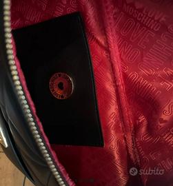 Vendo splendida borsa/marsupio Love Moschino in ecopelle nera trapuntata (quilted effect). Un accessorio iconico e versatile, perfetto da indossare a tracolla o in vita Eccellenti, tenuta con grande cura. Nessun graffio visibile sulla placca del logo dorato o sulla zip. Dettagli: Chiusura a zip robusta e sicura, cinturino regolabile in ecopelle. Interno foderato con logo Love Moschino.