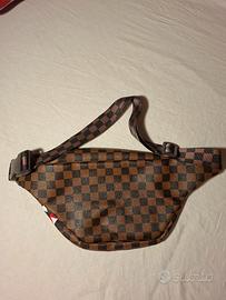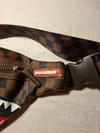 Marsupio Sprayground modello Shark in Paris Limited Edition, a scacchi sul marrone, realizzato in materiale poliuretano, molto resistente. Cinta regolabile su entrambi i lati in tessuto. Cerniere dorate. dimensioni 40x16x9. comprato nel loro temporary store a New York circa 5 anni fa