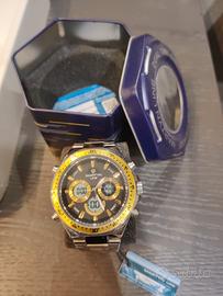 Orologio nuovo, mai indossato, completo di cartellino e box. orologio di fascia alta, con varie funzioni, in acciaio ed impermeabile. prezzo da cartellino 339 euro