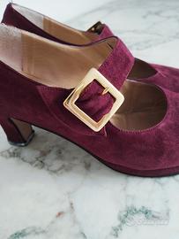 Décolleté anni '80 bordeaux numero 37 con tacco di 6 cm e fibbia dorata. Elegantissima, raffinata e retrò.