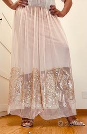 Maryley Donna, Gonna lunga in tulle rosa cipria, interno foderato, vita con elastico. Taglia 42.