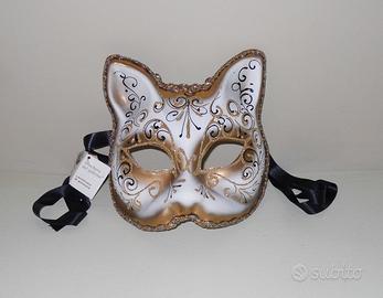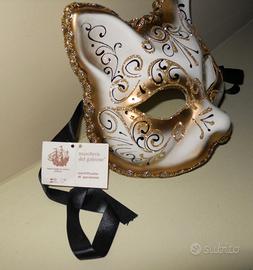 Vendo Bellissima maschera Veneziana, acquistata personalmente in una bottega artigianale a Venezia, originale con certificato di produzione "made in VENEZIA" fatta a mano, nuova, mai indossata. Questa maschera può essere indossata o appesa al muro. La maschera è stata pagata 58,00€ vendo a 35,00€.