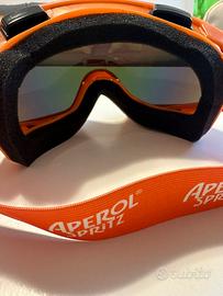 logo Aperol ed il suo riconoscibile colore arancione, questa maschera da sci è sia di tendenza che funzionale.