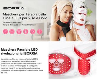 Vendo Maschera Facciale LED professionale marchio IBORRIA per Viso, Collo e Décolleté, Terapia della Luce nel Vicino Infrarosso, Maschera di Bellezza in Silicone Flessibile, Trattamento Domiciliare, Cura della Pelle.