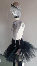 Gonna Scenografica: Realizzata in doppio strato di tulle nero per un volume ottimale, rifinita con una fascia alta in elastan che garantisce comfort e una silhouette definita.