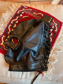 Nuova, mai usata. Maschera sexy in ecopelle per bdsm. Chiusura con laccio posteriore che la rende adattabile a qualunque dimensione di testa. Ha apertura utile nel caso venga infossata da persona con capelli lunghi, per fare uscire una coda alta.