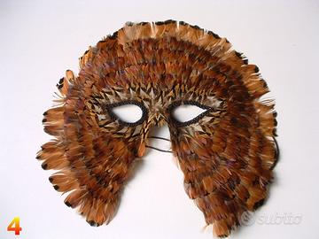Maschere artigianali per carnevale o feste in maschera, realizzate con piume di uccello, composte esclusivamente e totalmente a mano, pezzi unici, vendo a 45 euro ciascuna. Spedizione gratuita. Pagamento solo tramite bonifico bancario