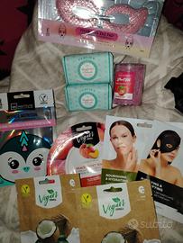 Set composto da 11 articoli misti fra maschere, saponette, sali da bagno e la pochette in ecopelle in omaggio.