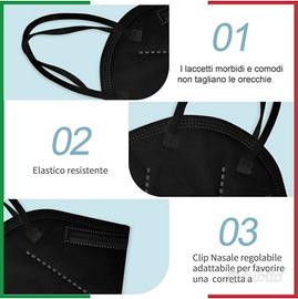 Vendo 25 mascherine di colore nero ffp2 in confezione di cartone incartate singolarmente, in aggiunta REGALO 30 mascherine chirurgiche sempre nere in pacchetti incartati da 10 pezzi ciascuno.