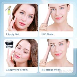 MASSAGGIATORE OCCHI: Il massaggiatore occhi è ottimo per ridurre rughe, linee sottili, gonfiori, borse sotto gli occhi, occhiaie e gonfiore intorno agli occhi e promuovere la circolazione sanguigna, migliora la struttura della pelle. Aiuta a lenire la pelle delicata sotto gli occhi per un aspetto più luminoso.