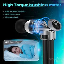 Pistola Massaggio Muscolare : Modello nuovo 2022 Motore Brushless silenzioso da 30/45 decibel, velocità 1200/2700 colpi al minuto per raggiungere fino a 16mm di profondità sotto pelle aiuta ad alleviare dolore, rigidità e l'irrigidimento muscolare, promuove il flusso sanguigno, rilascia l'acido lattico, aiuta ad accelerare il riscaldamento e il recupero.
