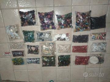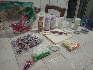 Bundle materiale creativo che vedete in foto: Pietre d'Agata Pietre di fiume Pietre madreperla Pietre di vetro Pietre di plastica Oggetti in ceramica Valigetta con l'occorrente per fare phonebeads Espositore di plastica a forma di albero (non presente in foto perché potevo metterne solo 6) Espositore divanetto per anelli Kit per sospeso trasparente con resina, strumenti per modellare la Plastica termo modellabile, tappetino, resina liquida, pennello e bobine di filo colorato, bobine di elastico, bobine di lenza e fil di ferro.