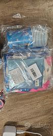 endo 2 set x festa di compleanno tema stitch. Nel dettaglio: 20 bicchieri, 20 piatti piani, 20 piattini da dessert, 2 buste palloncini colorati con disegno stitch,2 festoni glirterati happy birthday, 2 festoni personaggi, segna alimenti, decorazioni tavolo, accessori per fotografia con Bastoncini,decorazioni vario tipo e varie misure.
