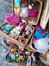 Manufatti in canapa (zaini, marsupu, borselli, capoelli, portamonete, porta laptop, ecc.), lana cotta (acchiapoa-sogni- borsette, portamonete, pantofole, portachiavi, zainetti, ecc.), lana (scialli, maglioni, coperte, ecc.), cachemire (sciarpe & pashmine), argento (collanine, braccialetti, anelli, orecchini, ciondoletti, cofanetti, ecc.), campane tibetane, tzing, lungta, tangka, lampade indiane, incensi vari (tibetani, nepalesi, indiani), portamonete tibetani, monili vari, ecc..