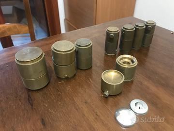 30 € per pezzo incluso 50 bottoni della misura adatta Disponibili N. 12 - 14 - 16 - 18 - 22 - 24 - 28 - 32 Matrici in ottone adatte per pressare i bottoni in alluminio, rivestendoli con il tessuto Usate e ben conservate