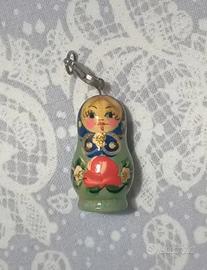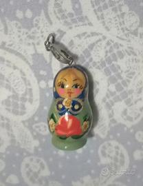 Piccolo charm di Matrioska Nuovo mai usato con gancio apposito e glitter