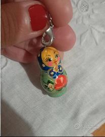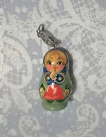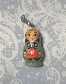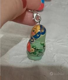 Piccolo charm di Matrioska Nuovo mai usato con gancio apposito e glitter