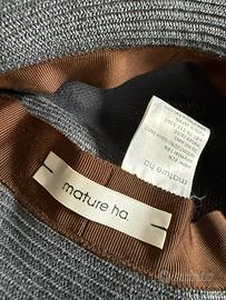 Cappello da donna in paglia pieghevole, MATURE HA Un nastro nero e uno verde alti 1 cm circa che possono circondare la corona e dare un tocco molto fine e ricercato al cappello. I materiali utilizzati per realizzare i cappelli di Mature Ha sono estremamente ricercati, con una grande cura per i dettagli — per donare a chi li indossa un confort senza eguali. La singolarità di questi cappelli realizzati in fibra, possono essere piegati, modificati e assumere ogni volta una forma diversa. Ogni cappello è fatto a mano in Giappone e supervisionato Boxed Hat realizzati in fibra di cellulosa sono il segno distintivo di questo brand di cappelli giapponesi. Altezza cupola 10 cm circa Larghezza ala 11 cm Taglia unica: 57,5 Marchio: Mature Ha. Perfetto ed utilizzato pochissimo Collezione attuale Retail 239€ paglia paper colore antracite con elegante nastro in pizzo nero e verde da intercambiare, flessibile, leggero taglia 57/58 cm. Ideale per viaggiare