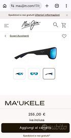 Nuovissimi mai usati, occhiali da sole Maui Jim modello Ma'ukele montatura esterno nero interno blu. Lenti in cristallo Stg grigio neutro, qualità Maui catergoria 3, curvatura base 8, contrasti al top, colori spettacolari; specchiatura esterna blu, antiriflesso interno lente blu. Taglia L si adattano alla maggior parte dei visi. Leggeri comodi con inserti al silicone anti scivolo per il sudore su nasello e astine. Misure lenti 64, ponte 17 astine 125. Completi di custodia originale rigida. Prezzo all'attuale listino Maui 255 eur. Si possono trovare scontati intorno ai 215. Regalati a questo prezzo.