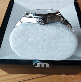 Maurice Lacroix Aikon, famoso per le finiture e per la vestibilità eccezionale. Il design iconico con bracciale integrato, ne fa un orologio elegante, ma anche sportivo e adatto all'uso di tutti i giorni. - Movimento: ML115 base Sellita SW200-1 - Automatico con fermo macchina - Riserva di carica: 38 ore - Cassa: 39 mm - Lug to lug: 45 mm - Spessore: 11 mm - Corona: a vite con logo - Impermeabilità: fino a 200 metri - Vetro: zaffiro (anche sul fondello) - Quadrante: blu con finitura Clous de Paris - Lancette e indici: con Super-LumiNova - Bracciale: solido a 5 maglie - Presenti tutte le maglie - Chiusura: deployante con 2 pulsanti - Sistema Easy Change (per sostituire il bracciale, senza attrezzi) - Full set L' orologio si trova in ottime condizioni. C'è qualche segnetto dovuto al normale utilizzo, avvenuto comunque in alternanza con altri pezzi e con l'attenzione di un appassionato. Assicuro imballo accurato con spedizione immediata. Non scambio e non permuto, nemmeno con iPhone, Ps4, Seiko, Citizen, Hamilton, Squale, Longines, Glycine, Yema, Vostok, Tudor, Oris, Mido, Rado, Doxa, Edox, Tissot, Zenith, Laco, Htd, Timex, Orient, Bulova