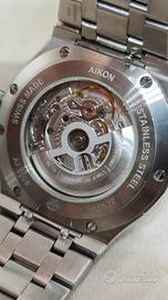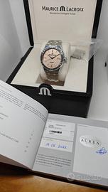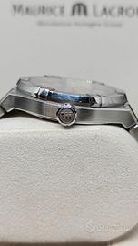 Maurice Lacroix AIKON Automatic 42mm – Ref. AI6008-SS002-730-1 full set del 2022 perfettamente funzionante orologio in buone condizioni generali presenta principalmente grafi sulla ghiera - come fa foto - facilmente risolvibile con una lucidata cassa in eccellenti condizioni bracciale in ottime condizioni - segnalo che nella chiusura c'è un po' di "gioco", non aderisce perfettamente ma funziona - facilmente sistemabile per altre info o foto non esitate a contattare Elegante, sportivo e di grande carattere, il Maurice Lacroix Aikon è l'erede del celebre modello Calypso degli anni '90. Caratterizzato da una cassa integrata e dalla distintiva lunetta a sei "bracci", è l'orologio perfetto per chi cerca un segnatempo versatile, adatto sia ad un outfit formale che ad un uso quotidiano. Caratteristiche Principali: Quadrante: Salmone con finitura Clous de Paris, che crea straordinari giochi di luce e profondità. Indici e lancette rodiate con trattamento Super-LumiNova per una perfetta leggibilità notturna. Movimento: Calibro automatico svizzero ML115 (su base Sellita SW200-1), affidabile e preciso, con 38 ore di riserva di carica e 26 rubini. Cassa: Acciaio inossidabile da 42 mm, con finiture alternate lucide e satinate di altissimo livello. Spessore contenuto (circa 11 mm) per un comfort eccellente al polso. Vetro: Vetro zaffiro con doppio trattamento antiriflesso. Fondello: A vite con oblò in vetro zaffiro, che permette di ammirare il movimento decorato. Bracciale: In acciaio a 5 maglie, integrato alla cassa. Dotato del sistema Easy Change (permette di cambiare il cinturino in pochi secondi senza attrezzi) e chiusura a farfalla con pulsanti di sicurezza. Impermeabilità: Fino a 200 metri (20 ATM), con corona a vite, rendendolo adatto anche al nuoto e alle attività acquatiche. Referenza: AI6008-SS002-730-1 Diametro: 42 mm Materiale: Acciaio Inox Vetro: Zaffiro (fronte e retro) Resistenza all'acqua: 20 ATM (200m) Funzioni: Ore, minuti, secondi, data a ore 3.