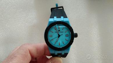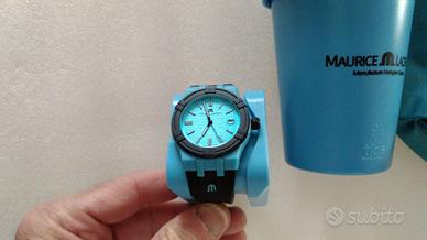 Vendo dalla mia collezione privata questo orologio "ecologico" Maurice Lacroix. Di seguito le caratteristiche: Brand: Maurice Lacroix Collezione: Aikon #Tide Stile (colore): AI2008-80080-300-0 Referenza: W647136 Nome completo: Maurice Lacrois Aikon #Tide Movimento: quarzo Caratteristiche: Ore, Minuti, Secondi | Data Materiale della cassa: composito Vetro: Zaffiro Fondello: chiuso a vite Forma: Rotonda Diametro: 40,00 mm Spessore: 11,00 mm Corona: a vite Resistenza all'acqua: 100 m Quadrante Colore: blu Indici: bastone Sfere: bastone Cinturino Tipo: gomma Fibbia: ad ardiglione L'orologio nasce dalla collaborazione tra la casa orologiera Maurice Lacroix e Tide Ocean, un'azienda svizzera specializzata nel trasformare la plastica che finisce nell'oceano in materia prima riciclata di alta qualità. Da questa collaborazione è nato un materiale composito di plastica e fibra di vetro, due volte più duro e cinque volte più resistente della plastica standard, che costituisce quasi l'intera struttura dell'orologio: cassa, fondello, lunetta, corona e fibbia del cinturino (il cinturino in gomma è l’unico elemento al momento non completamente riciclabile). Anche la "scatola" è realizzata al 100% con materiale riciclato: l'orologio è posto in un OceanMug, a sua volta avvolto in un OceanBag. In tutto, sono state utilizzate 17 bottiglie per realizzare orologio e confezione. Valuto permute con altri orologi di mio interesse, anche con conguaglio a favore; preferisco lo scambio a mano a Milano e hinterland. In caso di ulteriori informazioni, contattatemi pure. Grazie per l'attenzione.