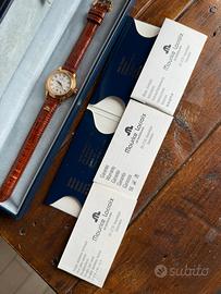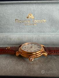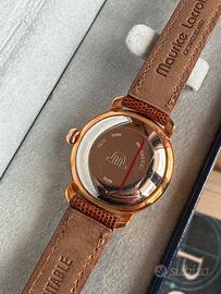 Maurice Lacroix Les Classiques Automatic - Full Set - Ottime condizioni Splendido orologio svizzero Maurice Lacroix, linea "Les Classiques", movimento automatico. Un pezzo di rara eleganza, perfetto per chi cerca un segnatempo raffinato e senza tempo. L'orologio è in condizioni eccellenti, pari al nuovo, completo di scatola originale e documenti dell'epoca (Full Set). Specifiche tecniche: • Movimento: Automatico (Swiss Made) • Diametro cassa senza corona 28mm • Cassa: Placcata oro con elegante lavorazione a "doppio scalino". • Quadrante: Lavorazione guilloché argento con numeri romani applicati e datario a ore 6. • Vetro: Zaffiro antigraffio. • Cinturino: Originale Maurice Lacroix in vera lucertola (Lézard Véritable) color marrone, con fibbia logata. • Corredo: Scatola, libretti di istruzioni e garanzia originale. Orologio perfettamente funzionante. Spedizione assicurata e imballaggio accurato. #MauriceLacroix #OrologioAutomatico #SwissMade #LuxuryWatch #VintageWatch #LesClassiques