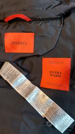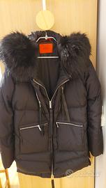 giacca extra calda Max&Co taglia 44 (80% piumino 20% piuma) ampio sistema di tasche,cappuccio staccabile,taglio semplice, cerniere sui lati della giacca, manica raglan, chiusura con cerniera