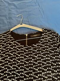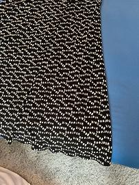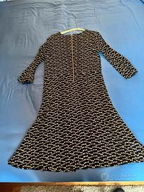 Abito morbido in maglina lungo appena sotto il ginocchio nero con piccoli disegni beige, manica a 3/4, taglia 46