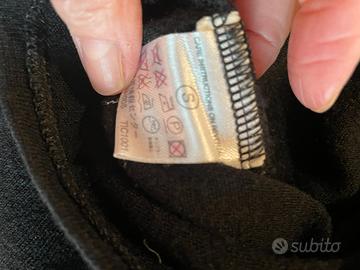 Golfino nero con collo a scialle. si puo’ anche chiudere con una spilla.